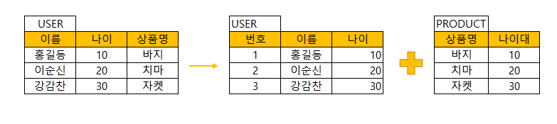 데이터를 쪼개어 하나의 컬럼에는 하나의 값만 나오도록 합니다.