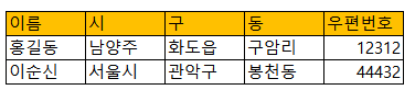 *우편번호로 시, 구, 동을 알 수 있습니다.