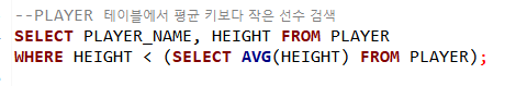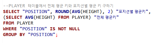 GROUP BY : ~별(예 : 포지션 별 평균 키)