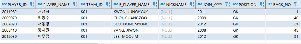 WHERE PLAYER_NAME LIKE '김%';
