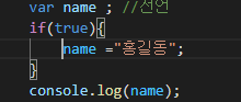 var의 스코프(실행하거나 사용하는 범위)는 전역, 또는 함수 내부 로컬 2가지만 존재합니다.