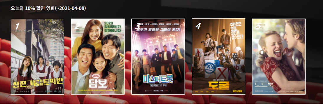 추가로 오늘의 10%할인 영화들이 있습니다.