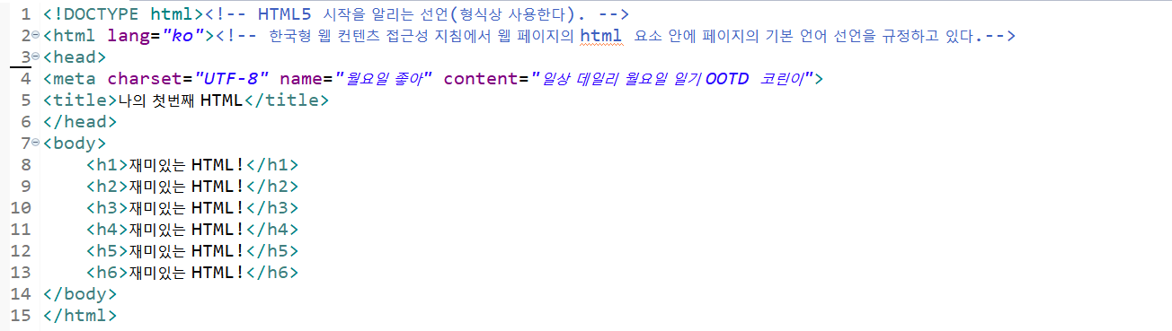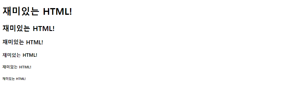 가장 큰 <h1>태그부터 <h6>태그까지 다양한 크기로 제목을 표현할 수 있습니다.