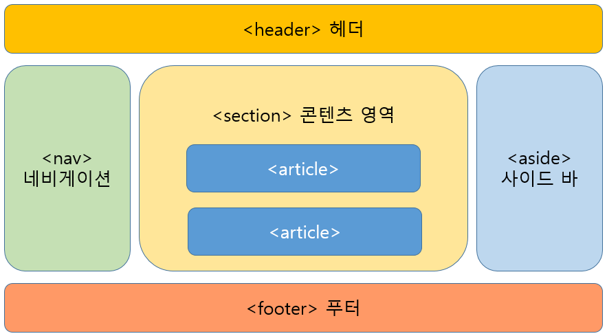 그 안에는 섹션 제목을 나타내는 <h1> ~ <h6>제목 태그가 함께 사용됩니다.