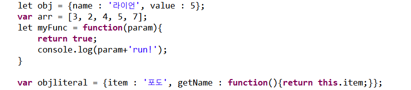 다양한 객체 선언 예)