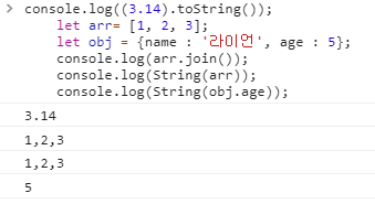 String() 으로 숫자와 배열의 문자열 형 변환이 가능합니다.