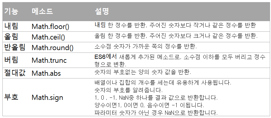 [JAVASCRIPT - ES6] 데이터 타입과 자료형의 변환, NULL, Undefined, Math 객체 메소드