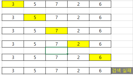 맨 앞부터 순서대로 요소를 검색하는 알고리즘 입니다.